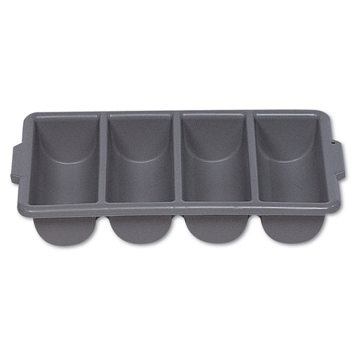 Cutlery Bin, 4 Compartments, Plastic, Gray