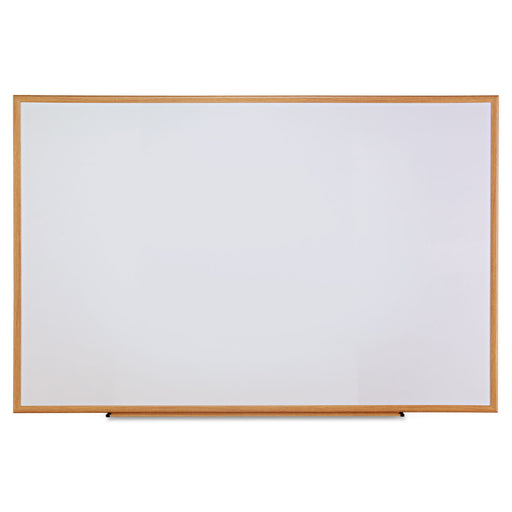 Dry-Erase Board, Melamine, 72 x 48, White, Oak-Finished Frame