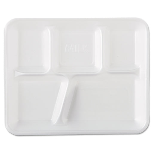 Foam School Trays, 5-Comp, 10 2/5 x 8 2/5 x 1 1/4, White, 500/Carton