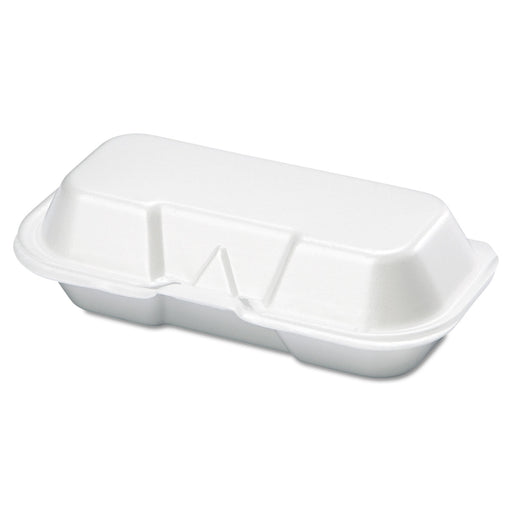 Foam Hot Dog Container/Hinged Lid, 7-1/1 x3-4/5x2-3/10, White,125/Bag, 4 Bags/Ct