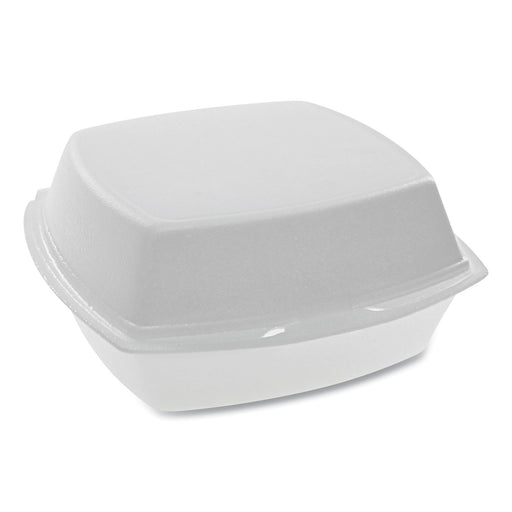 Foam Hinged Lid Containers, Single Tab Lock, 6.38 x 6.38 x 3, 1-Compartment, White, 500/Carton