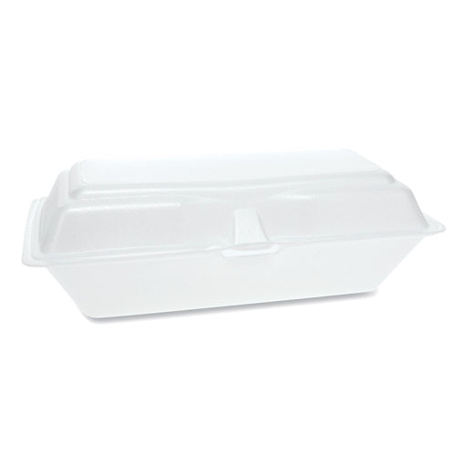 Foam Hinged Lid Containers, Dual Tab Lock Hoagie, 13 x 4 x 4, 1-Compartment, White, 250/Carton