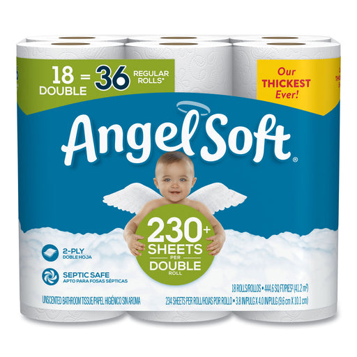 Double-Roll Bathroom Tissue, Septic Safe, 2-Ply, White, 3.8 x 4.41, 230 Sheets/Roll, 18 Rolls/Carton