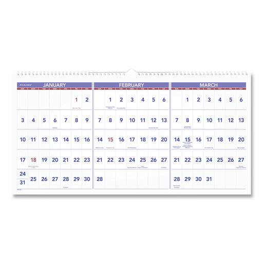 $0.00| /CALENDAR,WALL,HRZNTL,3MTHThree-month per page view: past, current and future months. Large, easy-to-read numbers. Federal holidays highlighted. Whi...