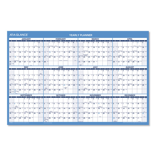 Horizontal Erasable Wall Planner, 36 x 24, Blue/White RY, Red/White AY, 2020-2021