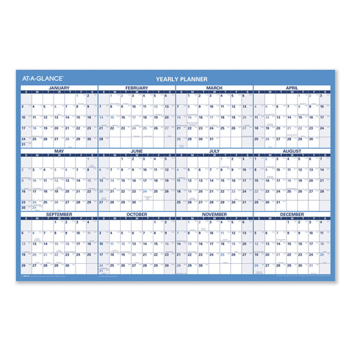 Horizontal Erasable Wall Planner, 36 x 24, Blue/White, 2021