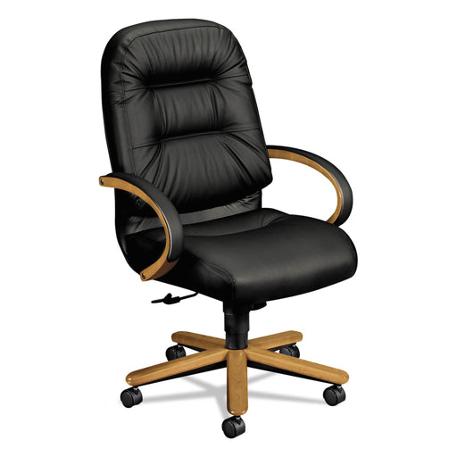2190 Pillow-Soft Wood Series Executive High-Back Chair, Harvest/Black Leather