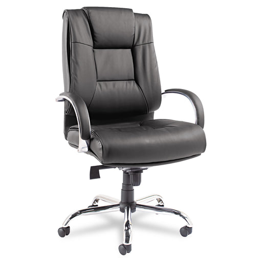 Alera Ravino Big and Tall Series High-Back Swivel/Tilt Leather Chair, Supports up to 450 lbs, Black Seat/Back, Chrome Base