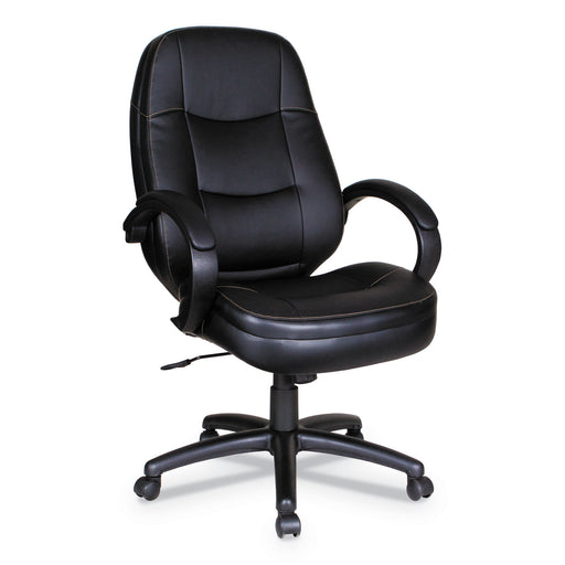 Alera PF Series High-Back Leather Office Chair, Supports up to 275 lbs, Black Seat/Black Back, Black Base