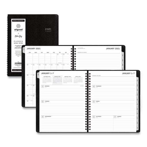 Aligned Weekly/Monthly Notes Planner, 8.75 x 7, Black, 2021