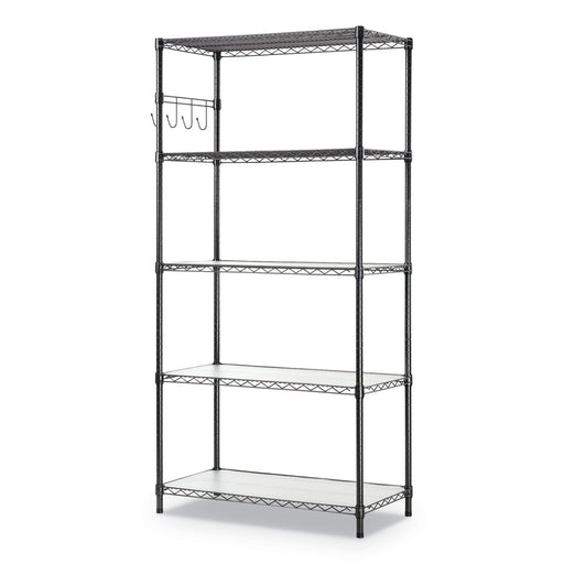 5-Shelf Wire Shelving Kit with Casters and Shelf Liners, 36w x 18d x 72h, Black Anthracite