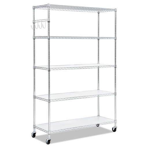 5-Shelf Wire Shelving Kit with Casters and Shelf Liners, 48w x 18d x 72h, Silver