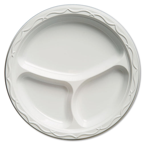 Aristocrat Plastic Plates, 10 1/4 Inches, White, Round, 3 Compartments, 125/Pack