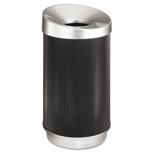At-Your-Disposal Vertex Receptacle, Round, Polyethylene, 38 gal, Black/Chrome
