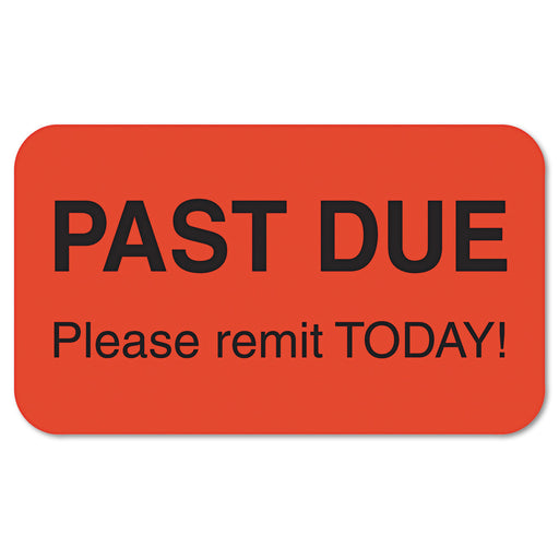 Billing Collection Labels, PAST DUE Please remit TODAY!, 0.88 x 1.5, Fluorescent Red, 250/Roll