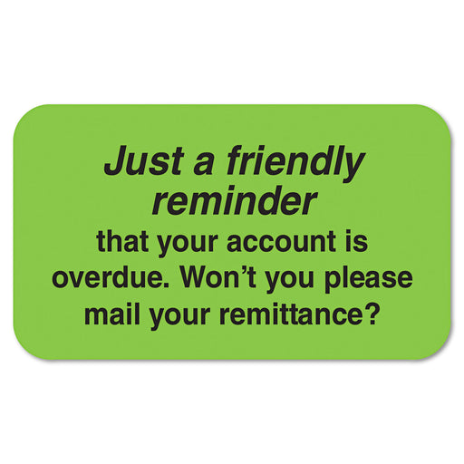 Billing Collection Labels, Friendly Reminder, 0.88 x 1.5, Green, 250/Roll