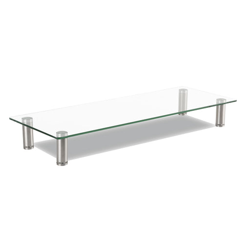 Adjustable Tempered Glass Monitor Riser, 22 3/4 x 8 1/4 x 3 1/2, Clear/Silver