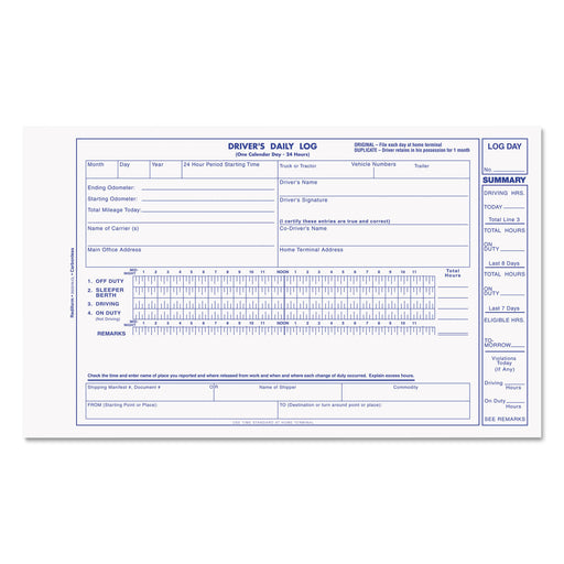 Driver's Daily Log, 8 3/4 x 5 3/8, Carbonless Duplicate, 31 Sets/Book