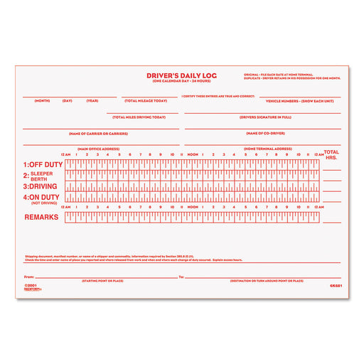 $0.00| /BOOK,DRIVER LOG,DUP,31/STLog a day's driving summary in separate section at right side of each form. Vehicle report on back of original with odomet...