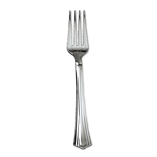 Heavyweight Plastic Forks, Reflections Design, Silver, 600/Carton