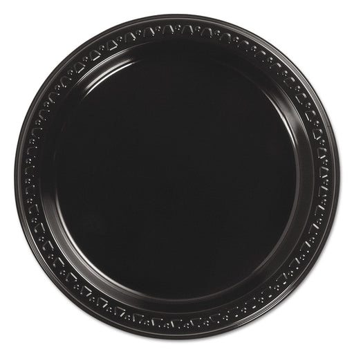 Heavyweight Plastic Plates, 9" Diamter, Black, 125/Pack, 4 Packs/CT