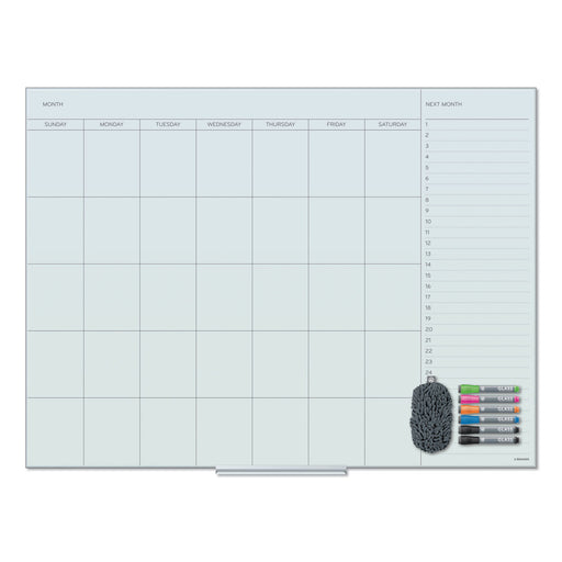 Floating Glass Dry Erase Undated One Month Calendar, 36 x 24, White