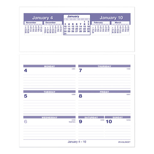 Flip-A-Week Desk Calendar Refill with QuickNotes, 7 x 6, White, 2021