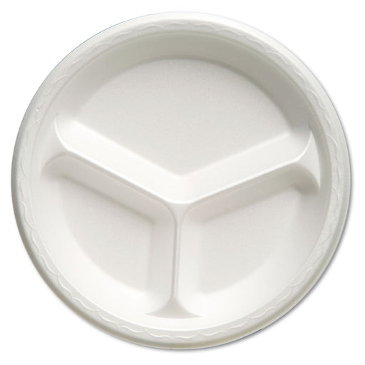Foam Dinnerware, Plate, 3-Comp, 8 7/8" dia, White, 125/Pack, 4 Packs/Carton