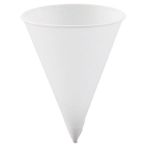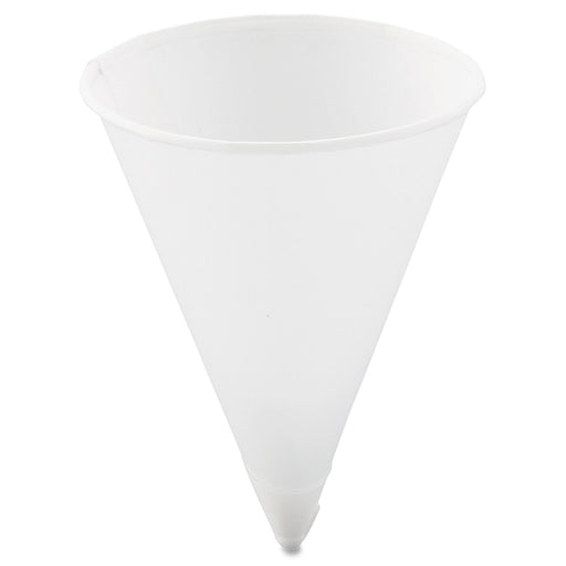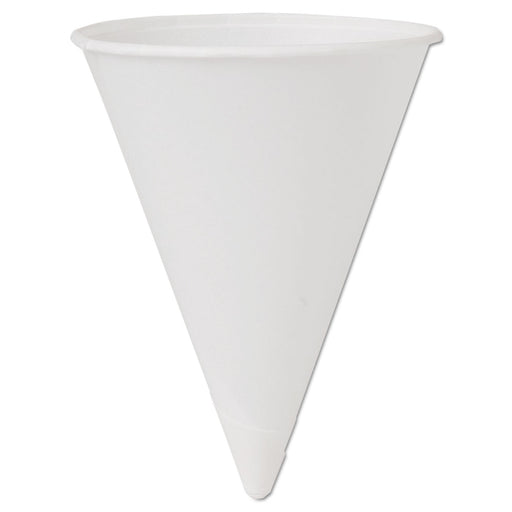 $0.00| /CUP,CONICAL,RLD RIM,4OZSimple, cone-shaped cups. Economical choice. Cup Type: Cold; Capacity (Volume): 4 oz; Material(s): Paper; Color(s): White.