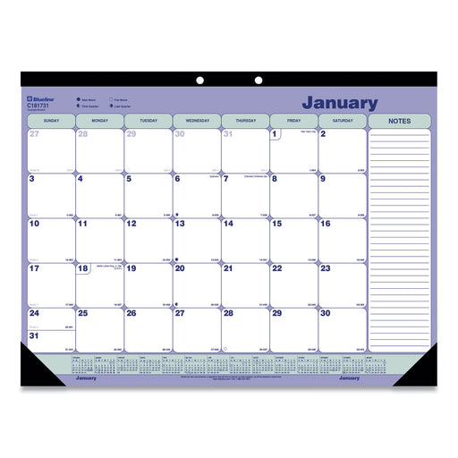Desk Pad Calendar, 21.25 x 16, Blue/White/Green, 2021