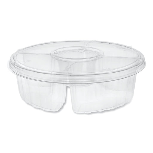 Dip Cup Platter, 4-Compartment, 10" dia, 64 oz, Clear, 100/Carton