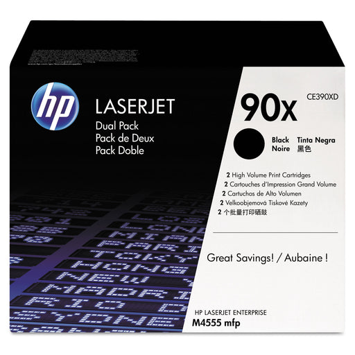 HP 90X, (CE390X-D) 2-pack High Yield Black Original LaserJet Toner Cartridges
