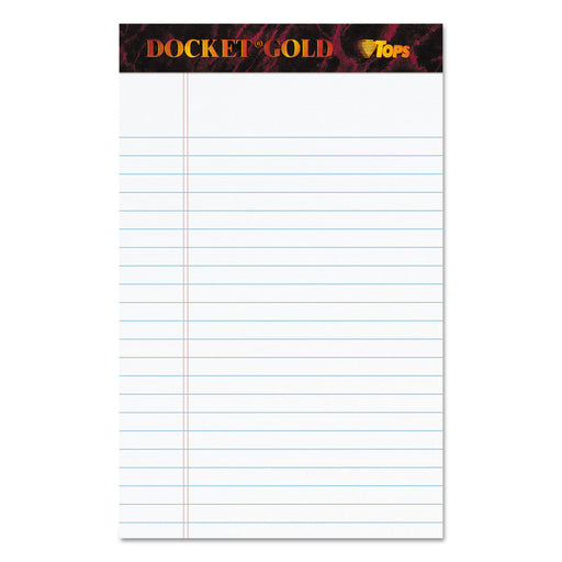 Docket Gold Ruled Perforated Pads, Narrow Rule, 5 x 8, White, 50 Sheets, 12/Pack