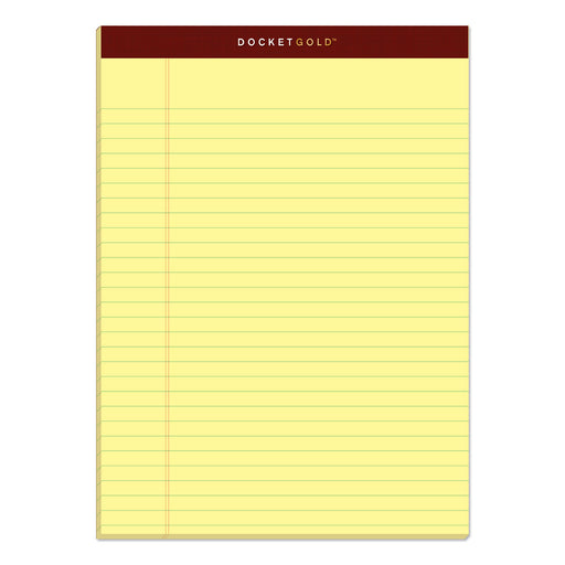 Docket Gold Ruled Perforated Pads, Wide/Legal Rule, 8.5 x 11.75, Canary, 50 Sheets, 12/Pack