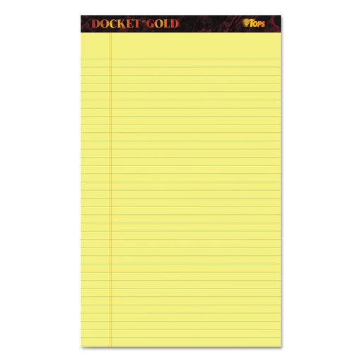 Docket Gold Ruled Perforated Pads, Wide/Legal Rule, 8.5 x 14, Canary, 50 Sheets, 12/Pack