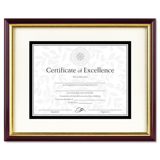 Document/Certificate Frame w/Mat, Plastic, 11 x 14, 8 1/2 x 11, Mahogany/Gold