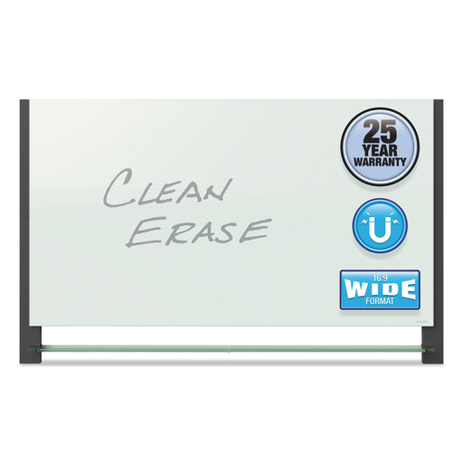 Evoque Magnetic Glass Marker Board with Black Aluminum Frame, 74 x 42, White