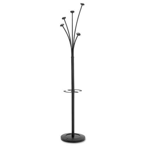 Festival Coat Stand with Umbrella Holder, 5 Knobs, 14w x 14d x 73.67h, Black