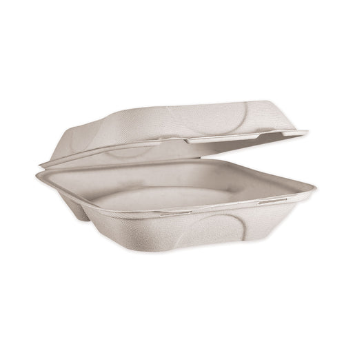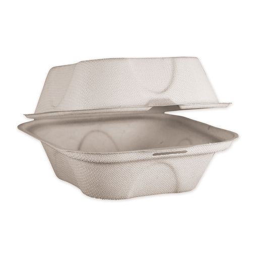Fiber Hinged Burger Box Containers, 6 x 6 x 3, Natural, 500/Carton