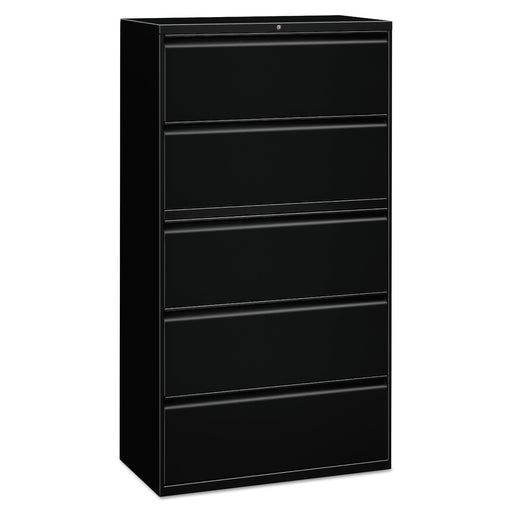 Five-Drawer Lateral File Cabinet, 36w x 18d x 64.25h, Black