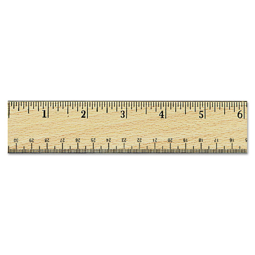 Flat Wood Ruler w/Double Metal Edge, 12", Clear Lacquer Finish