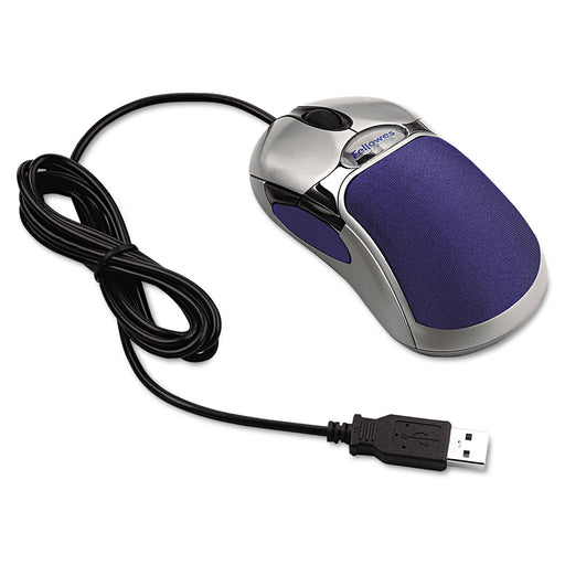 HD Precision Five-Button Optical Gel Mouse, USB 2.0, Left/Right Hand Use, Blue/Silver