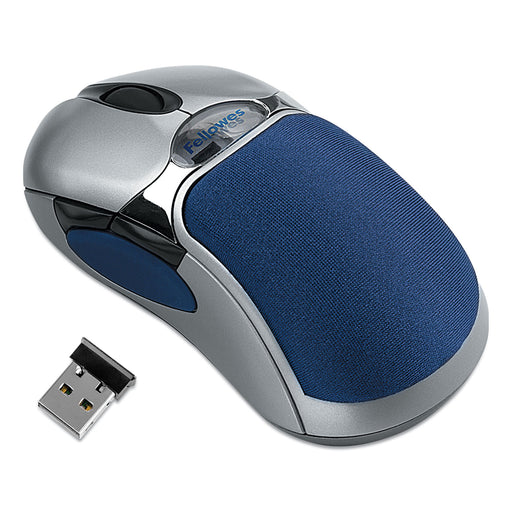 HD Precision Cordless Optical Five-Button Gel Mouse, 2.4 GHz Frequency/10.83 ft Range, Left/Right Hand Use, Blue/Silver
