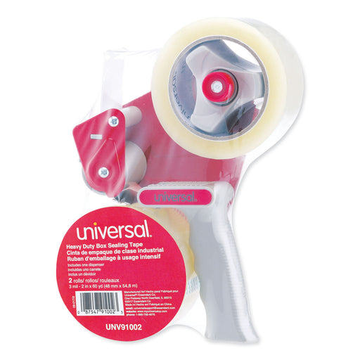 Heavy-Duty Box Sealing Tape with Pistol Grip Dispenser, 3" Core, 1.88" x 60 yds, Clear, 1 Dispenser and 2 Tape Rolls/Pack
