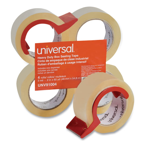 Heavy-Duty Box Sealing Tape with Dispenser, 3" Core, 1.88" x 60 yds, Clear, 4/Box