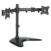 Freestanding desktop dual monitor arm fits monitors up to 27" and up to 18 lbs per monitor. Height easily adjusted for an optimal ergonomic position. Fully articulating design provides 360-degree rotation, 180-degree swivel and ±45-degree tilting for any viewing perspective. Cable clips for cable management. Monitor arm has a heavy steel base for excellent stability. Wall/Ceiling Mounts & Hardware Type: Desk Mount Base; Mounting: Desk; Depth: 13"; Width: 32".