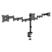 Fits monitors up to 27" and up to 18 lbs per monitor. Height easily adjusted for an optimal ergonomic position. Fully articulating design provides 360-degree rotation, 180-degree swivel and ±45-degree tilting for any viewing perspective. Cable clips for cable management. Monitor arm attaches to the desk, via a clamp or grommet (both included). For Three Monitors. Wall/Ceiling Mounts & Hardware Type: Clamp Mount Hardware/Grommet Mount Hardware; Mounting: Desk; Depth: 4.7"; Width: 57".