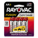 Need more energy? Fusion is Rayovac's longest lasting battery, here to deliver a boost of power. The energy-dense formula excels in the high-drain devices you use every day. Battery Type: Alkaline; Battery Size: AA; For Use With: Any device that uses AA batteries; Voltage: 1.5 V.