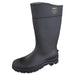 Keep feet dry with 100% waterproof, knee-high work boots. Comfort Technology, with a unique scalloped top-line design, allows comfort no matter how feet flex or move. Trac10 outsole design gives boots slip-resistance and increased stability. Contour heel cup molds to heel, reducing slippage for a secure fit. Foot Form contour insoles provide all-day comfort. Sleek and contemporary boots are ideal for farm, industrial or occupational work. Footwear Type: Work Boot; Size Group: 11; Material(s): Rubber; Steel; Color(s): Black.