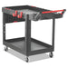 The heavy-duty adaptable cart provides superior versatility for tackling whatever task is at hand. Crafted of structural foam, this rolling service and utility cart can support up to 250 lb per shelf while reducing the need for time-consuming user modifications Features a variety of integrated features including an ergonomic adjustable handle with four positions for maximum comfort, a flip-up shelf, a slotted rim for small tool storage, two snap-in hooks for wrapping extension cords and locking casters to keep the cart stable during use. Color: Black; Color Family: Black; Capacity (Weight): 500 lbs; Caster/Glide/Wheel: Four Casters (2 Locking).